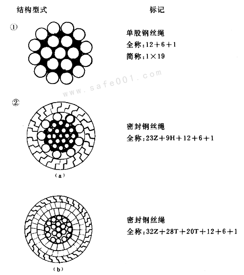 6×19S+IWR 6股每股19芯(西魯式鋼絲繩),中間一股為鋼(絲繩)芯